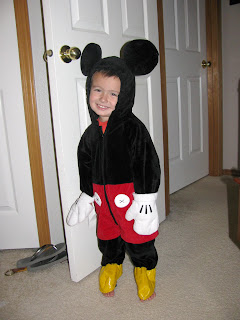 My mom found this costume at a garage sale for $1! Can you tell who was thrilled? He now says he wants to be Mickey Mouse for Halloween! Well alright then! That was easy!